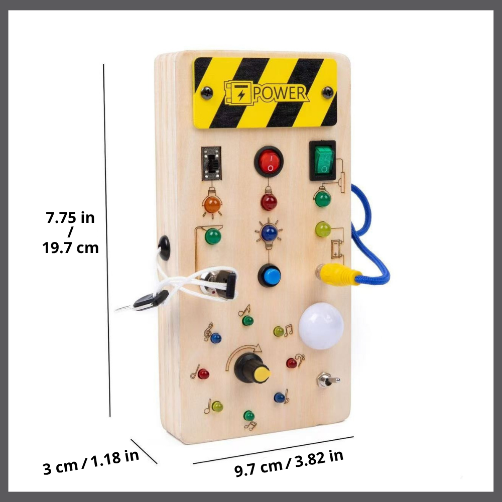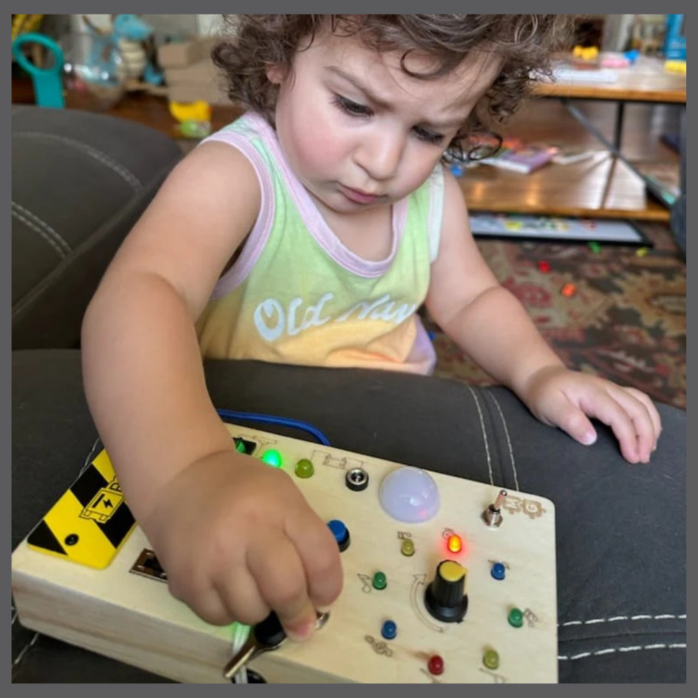 Chaque bouton, interrupteur et lumière du tableau ÉduSmart™ invite votre enfant à explorer, appuyer et expérimenter. Un design ingénieux qui transforme chaque geste en apprentissage ludique et sensoriel, sans jamais s’ennuyer.