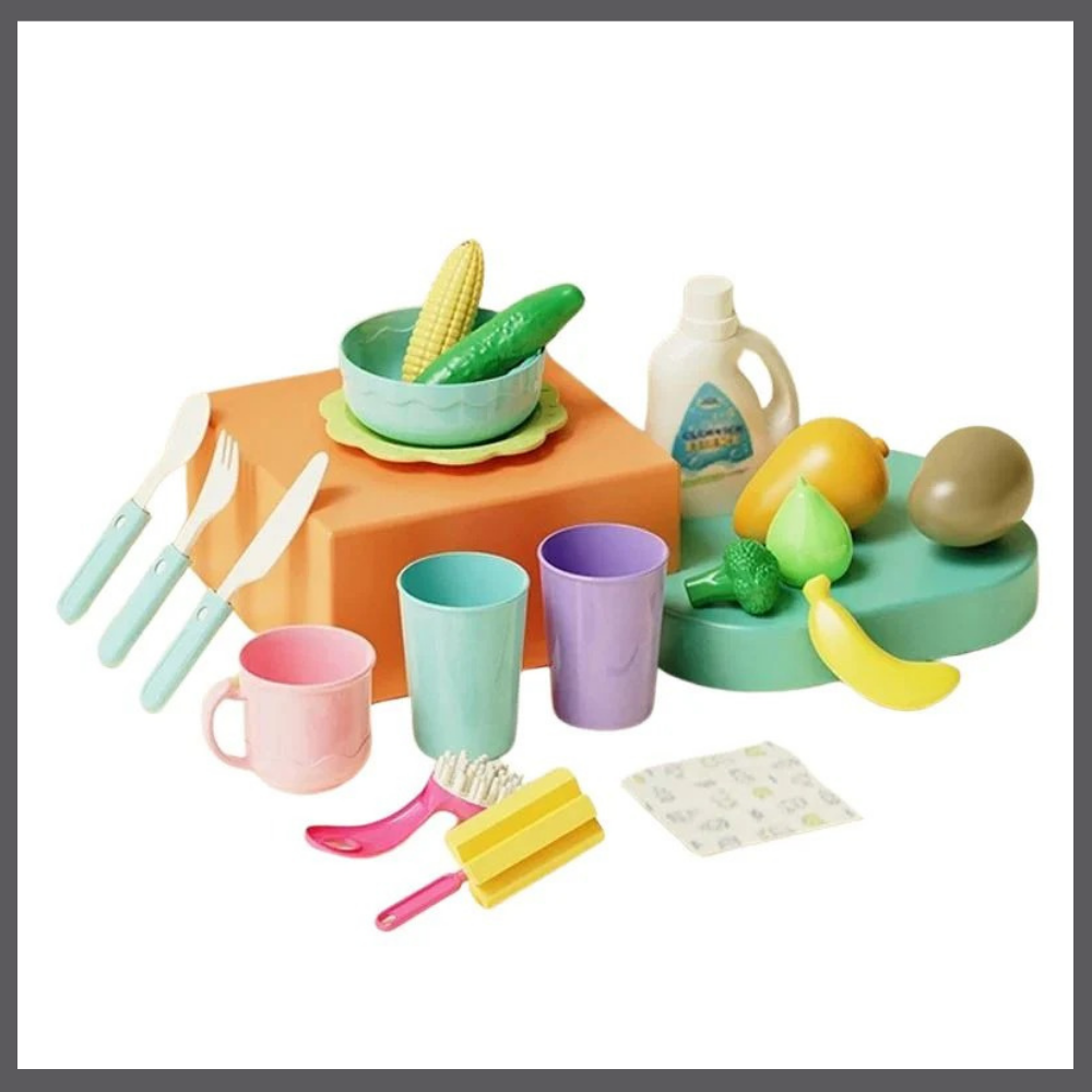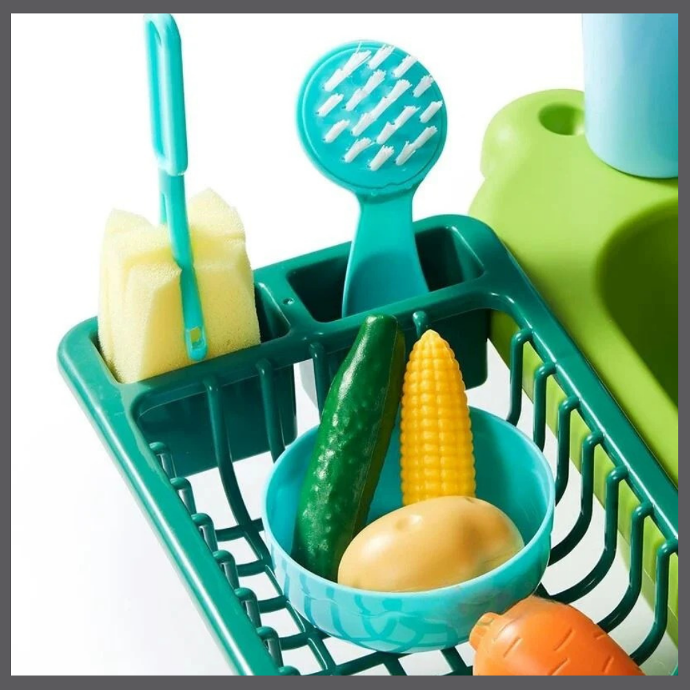 Avec l’ÉvierMagique™, les enfants découvrent la joie d’imiter les grands tout en apprenant la responsabilité. Le robinet qui coule et les petits accessoires transforment chaque moment en activité pratique et amusante, réduisant naturellement le temps passé devant les écrans.