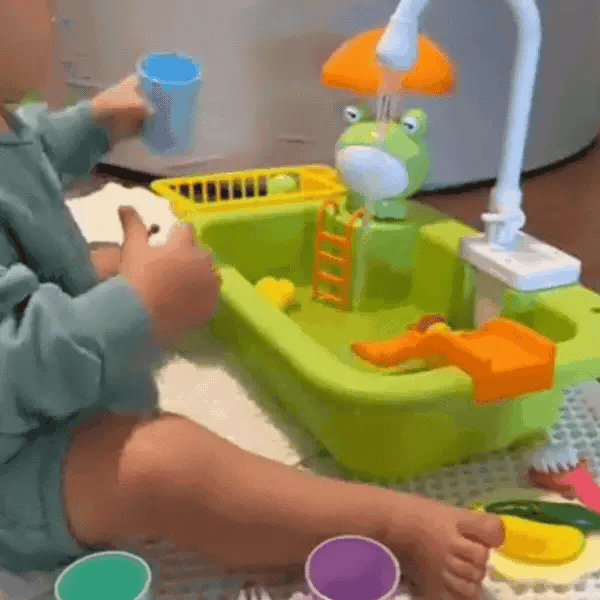 Ce jouet invite vos tout-petits à cuisiner, laver et inventer mille scénarios. Grâce à ses jouets flottants et à l’eau en mouvement, ils développent leur imagination, leur motricité fine et apprennent à collaborer entre frères, sœurs ou amis.