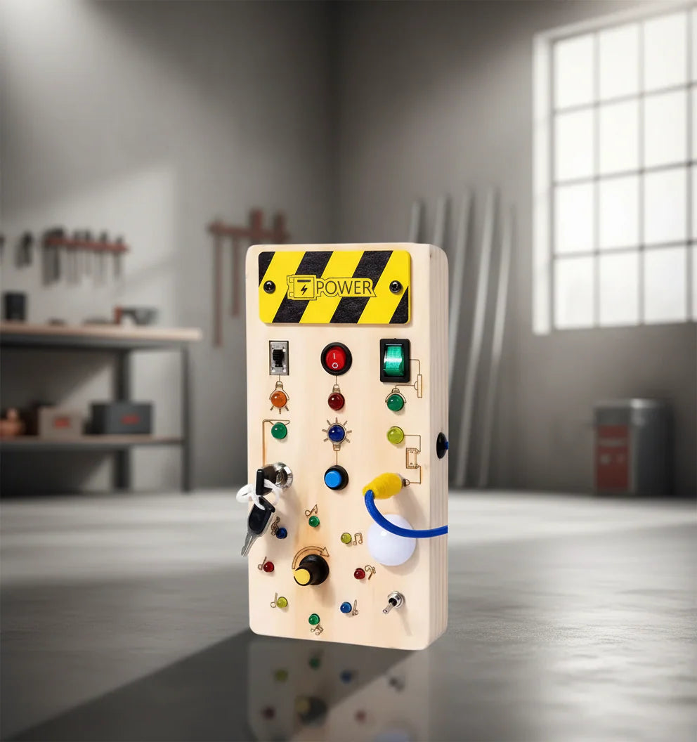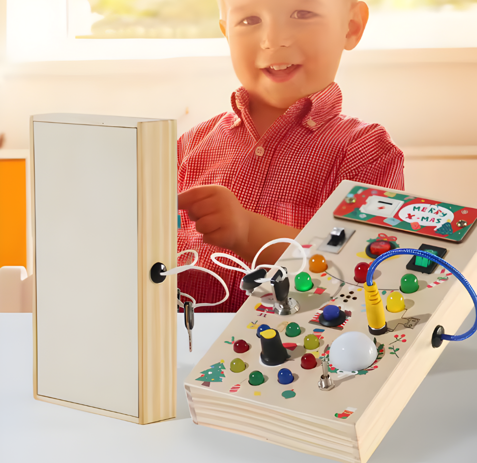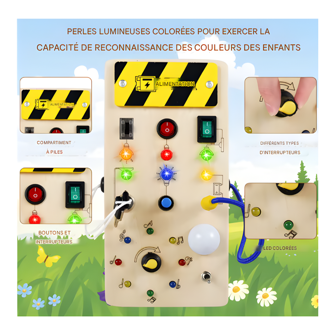 ✨ Tableau d’Activités Éducatif en Bois – Busy Board Sensoriel LED