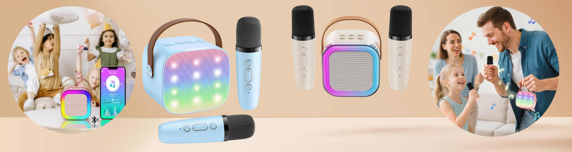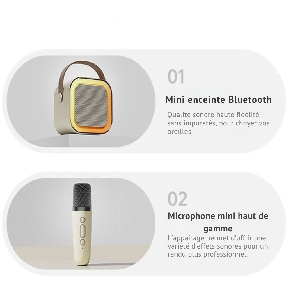 Compact, coloré et puissant, il combine enceinte Bluetooth, éclairage LED RGB et micro sans fil pour une expérience karaoké complète — où que vous soyez.