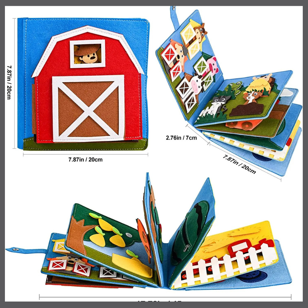 Chaque page invite votre enfant à zipper, attacher et explorer des textures variées. Entre animaux, fruits et fermiers, MiniCurieux™ transforme l’apprentissage en jeu, avec des matériaux doux, durables et 100 % sécurisés.